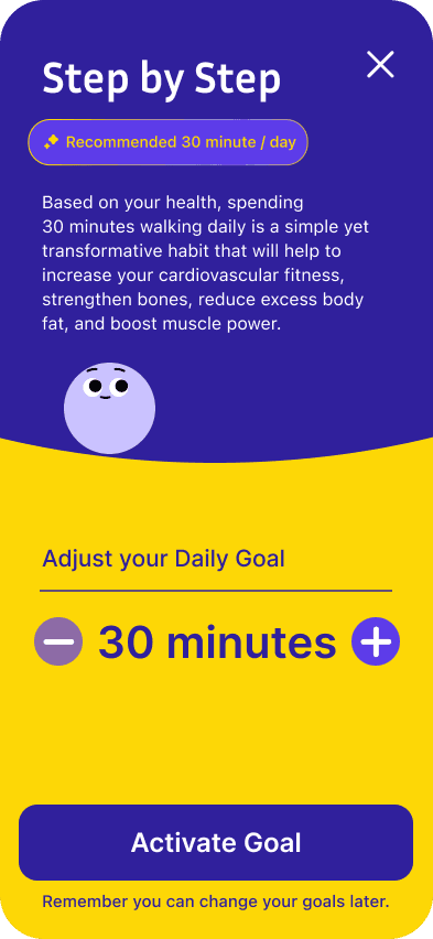 Created with the guidance of trusted NHS healthcare practitioners, this 0→1 SaaS wellbeing app is designed to serve as a ‘Digital Wellbeing Companion,’ understanding individual wellbeing needs and providing AI-enabled habit stacking tools to reinforce micro-doses of healthy behaviours, preventing rising chronic illnesses in the UK.
